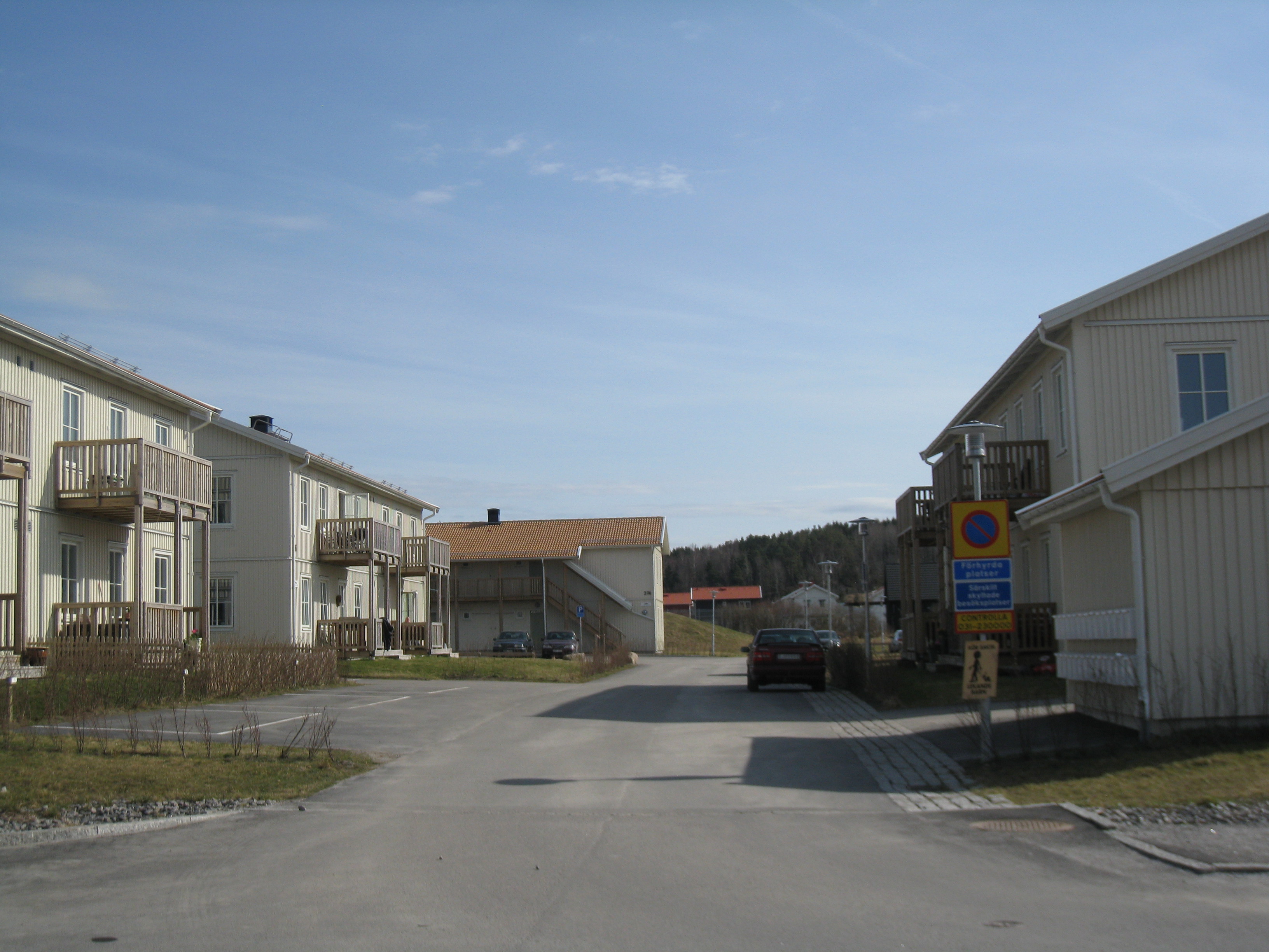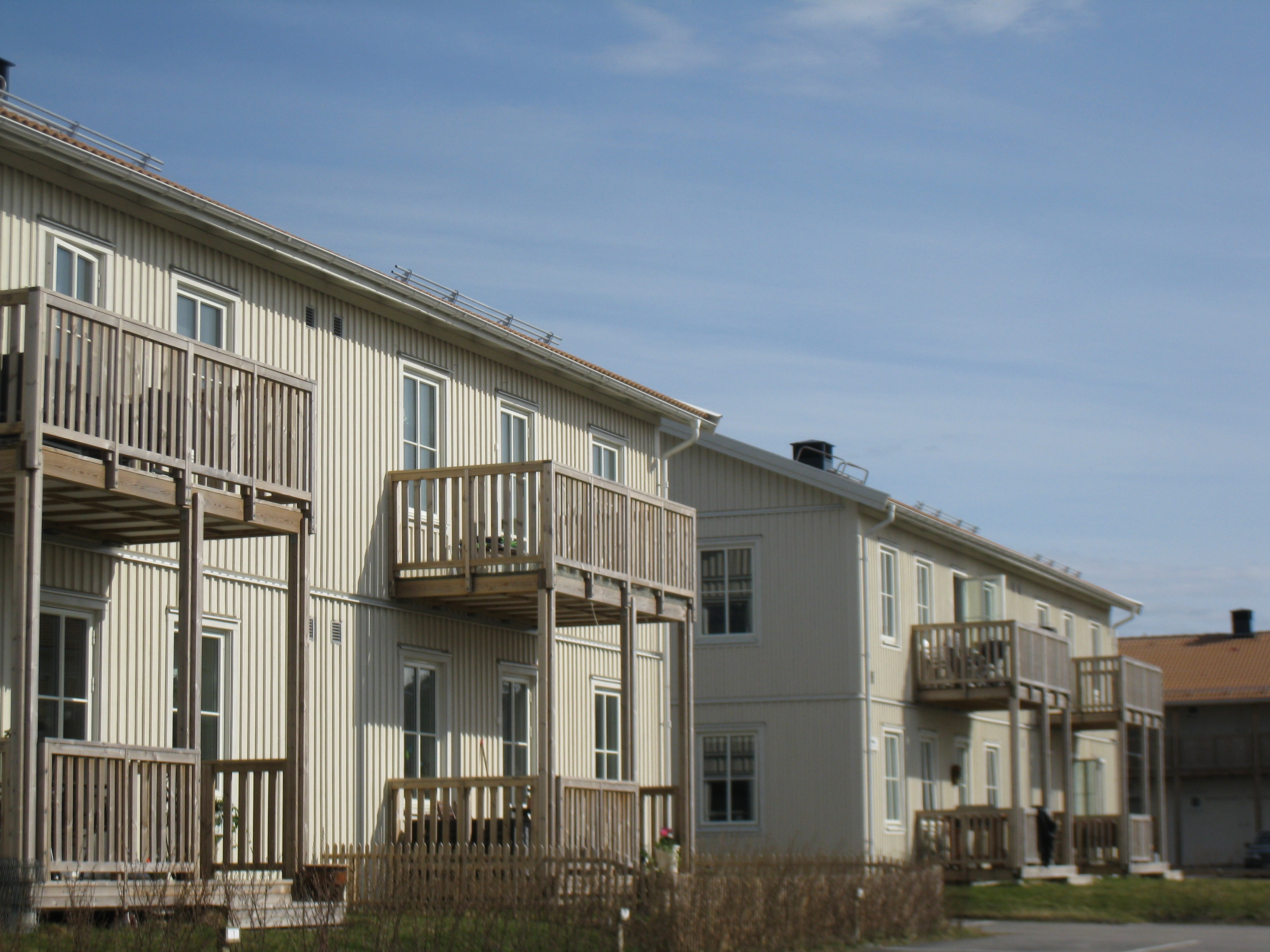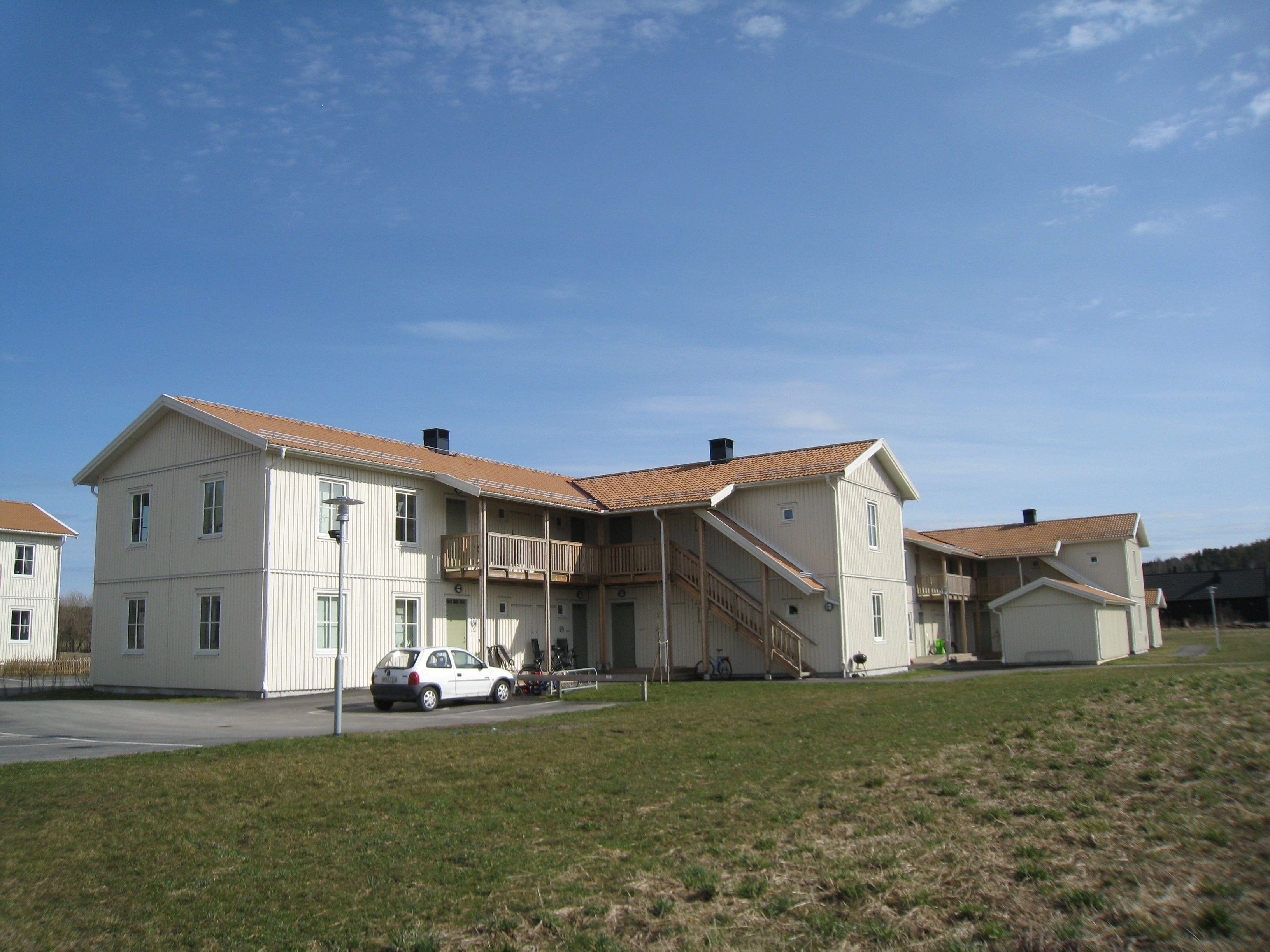 Här har vi ett flertal flerbostadshus i två plan med 83 lägenheter på 2-4 rum och kök. Lägenheterna är välplanerade och ljusa. Samtliga har egen balkong eller uteplats och tvätt-utrustning. Till varje lägenhet finns ett kallförråd och parkeringsplats. Husen är så kallade BoKlok-hus som är ett boendekoncept utvecklat av Skanska och IKEA