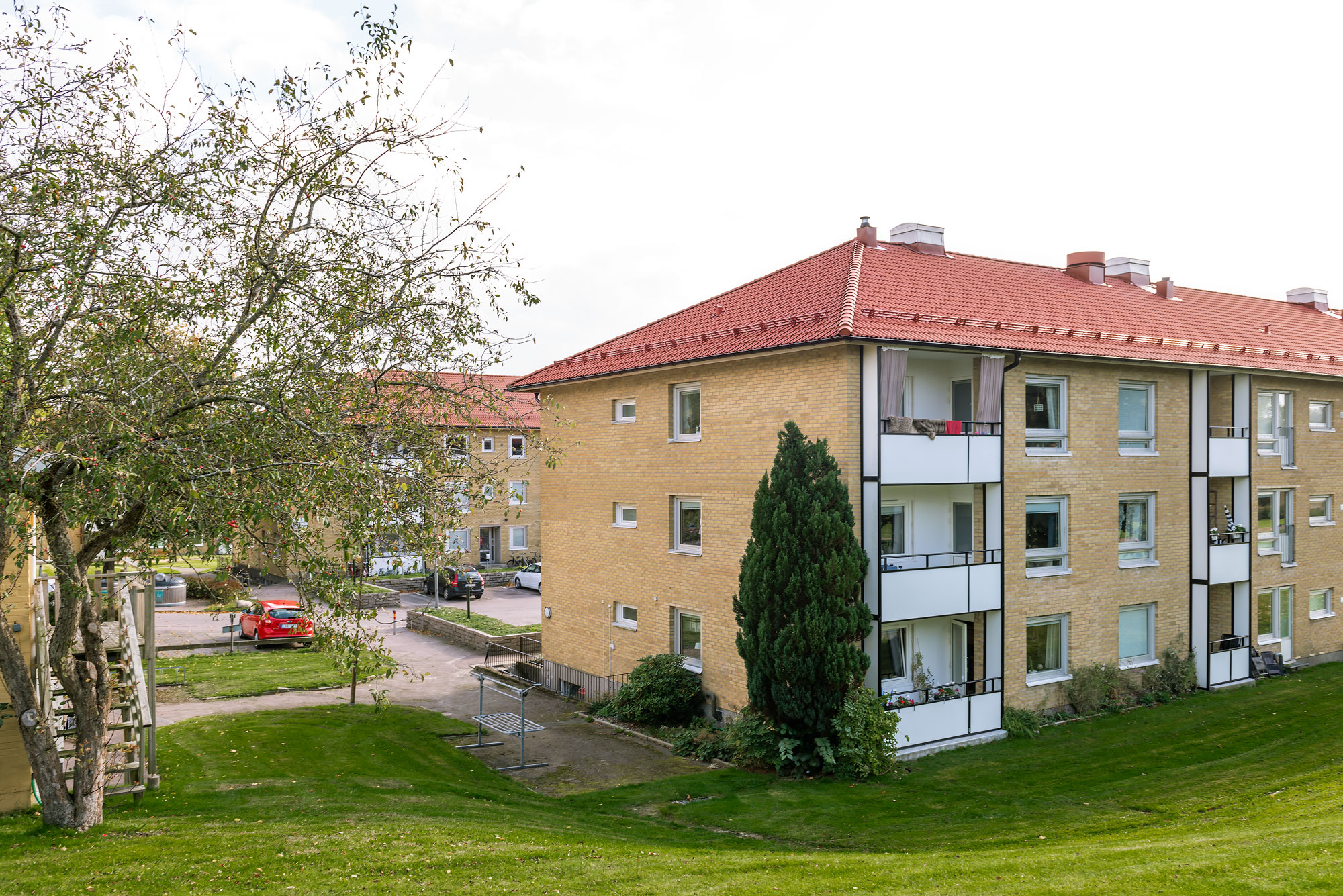Just nu är det väntetid på parkering närmast bostaden men parkeringsplatser finns på andra sidan Kongahällavägen.