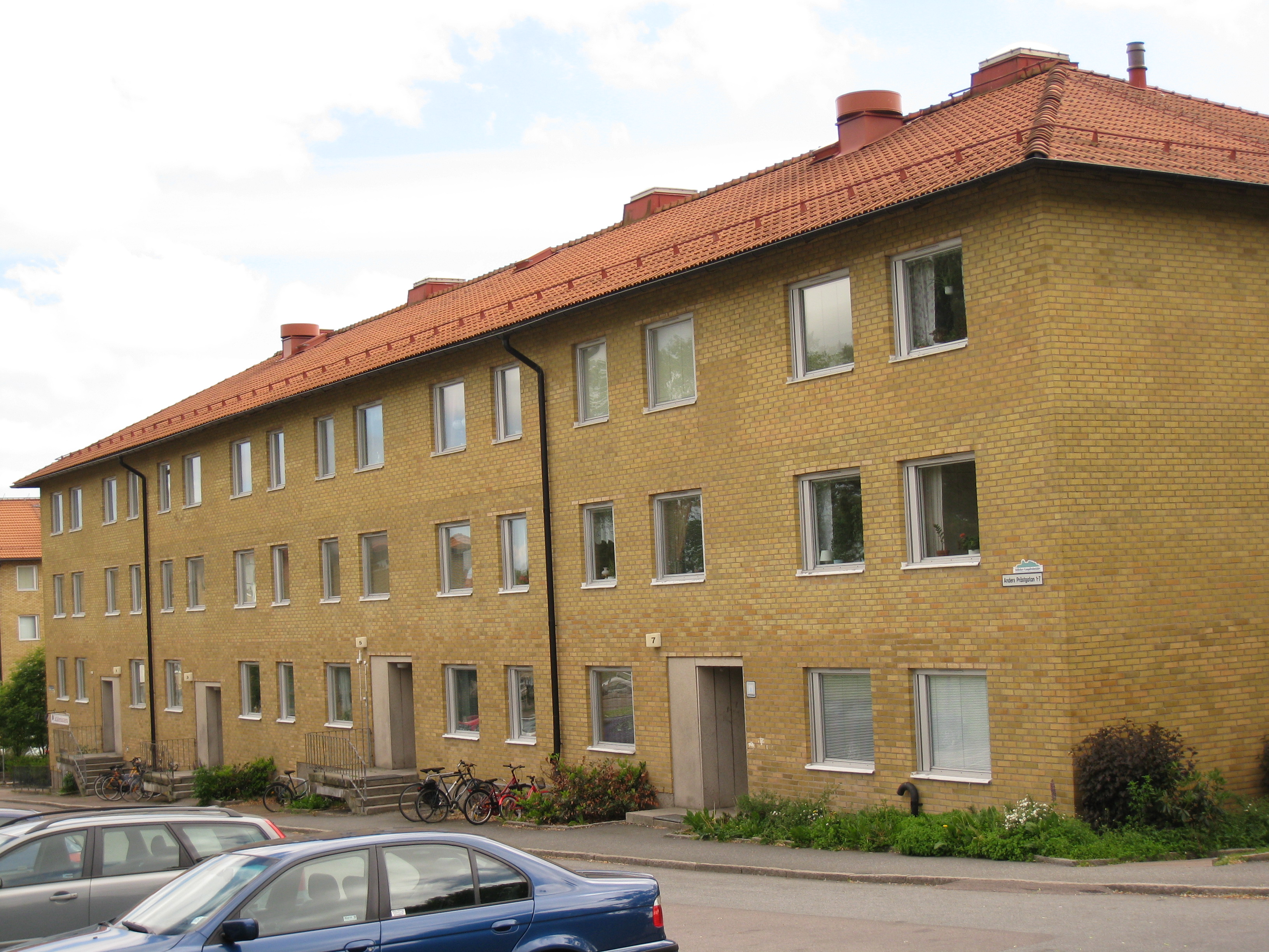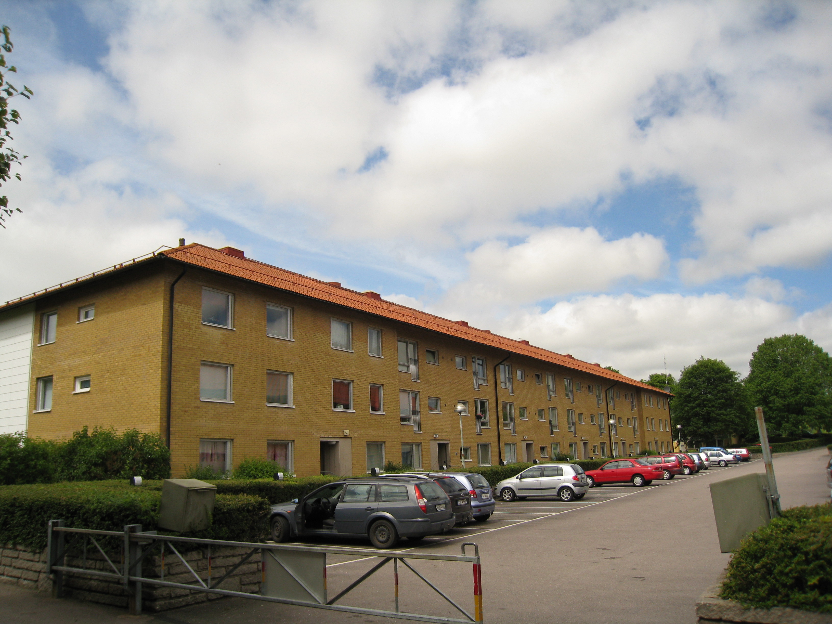 Söder om Kongahällagatan, i det område som kallas Gula Komarken, finns flerbostadshus på 3 - 4 våningar. Husen saknar hiss. Området är mycket populärt på grund av sin närhet till stadens centrala delar, resecentrum samt de låga hyresnivåerna.