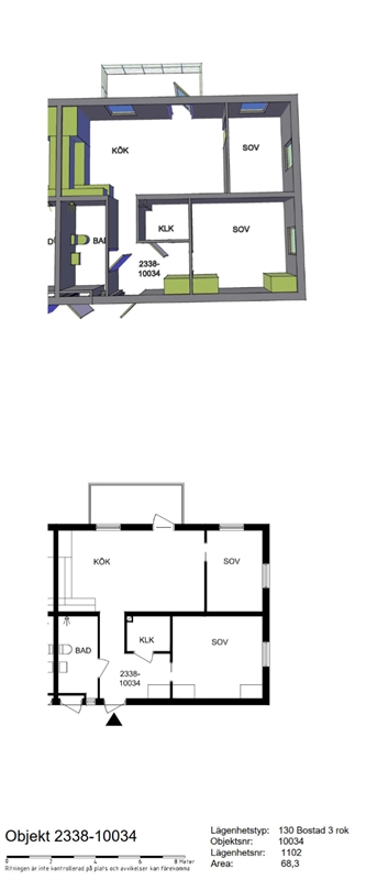 3:a med öppen planlösning mellan kök och vardagsrum. Badrummet är stort med tvättmaskin och torktumlare. Dusch. Ett stort sovrum och ett mindre sovrum. Ingen diskmaskin. Förråd på gården. Parkering ca 20 m från huset.